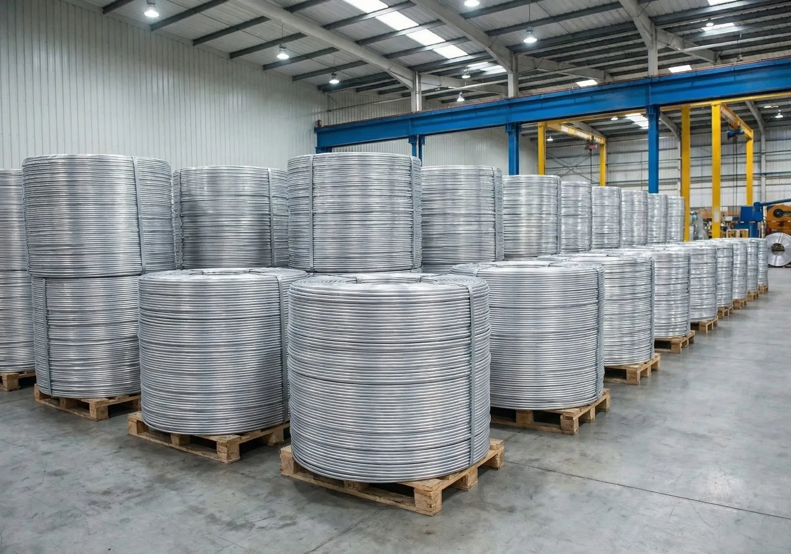 Produced from P1020 grade aluminium ingots at 99.7%+ purity with consistently high conductivity. Our single platform handles EC grade (1xxx) for conductors, structural alloy (6xxx) for construction, plus 4xxx, 5xxx, and 8xxx series.